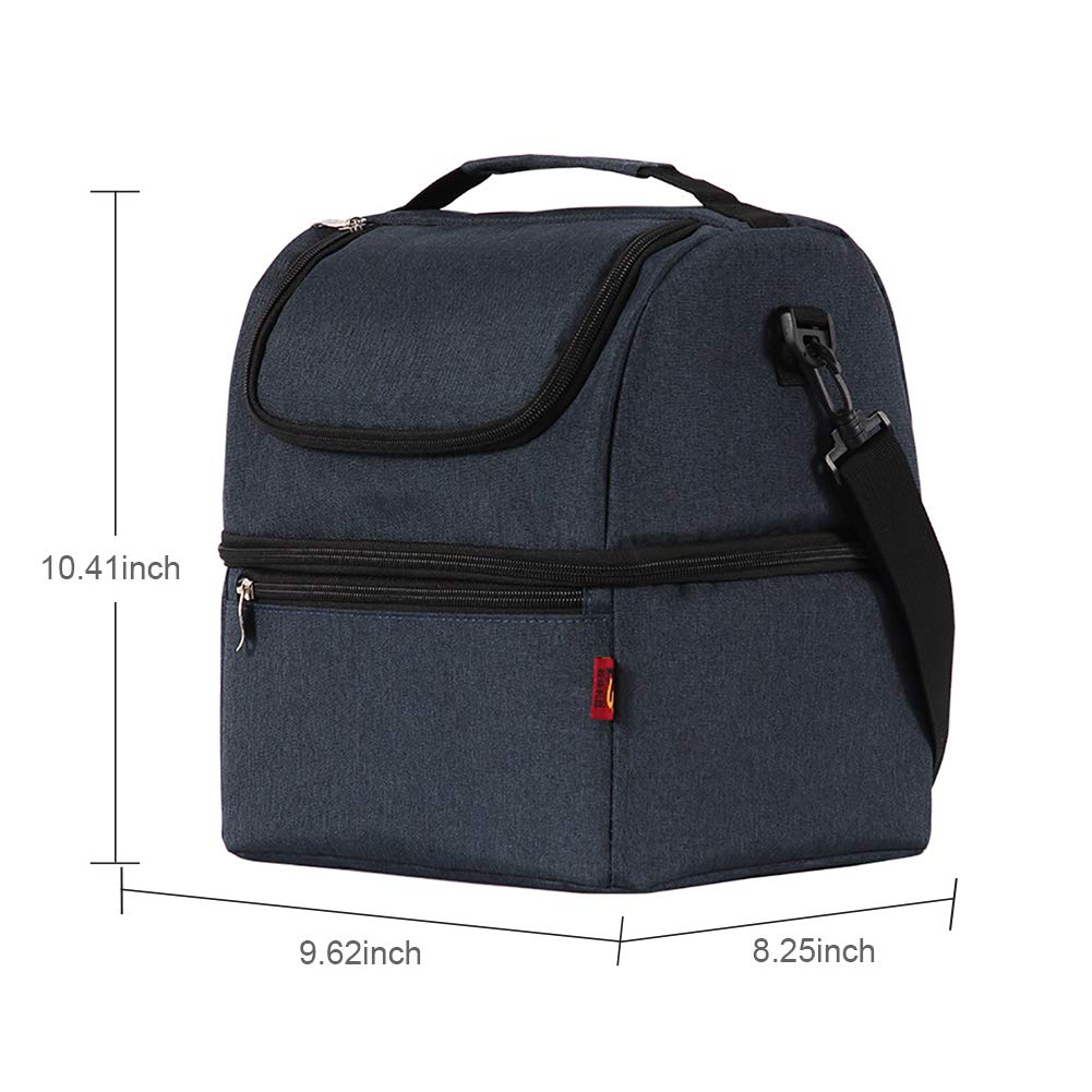 Mqforu Double Layer Lunch Bag For Adult Men Women Kids Thermal Bento Bag Box For Work School Picnic Blue Amazon De Home Kitchen
